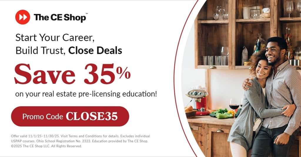 Our partner, The CE Shop, is an industry-leading real estate education provider for all stages of your career. Whether you’re looking to get started as an agent or are a tried-and-true veteran, their award-winning courses and Agent Essential resources can help you meet your requirements while encouraging your growth as a professional.